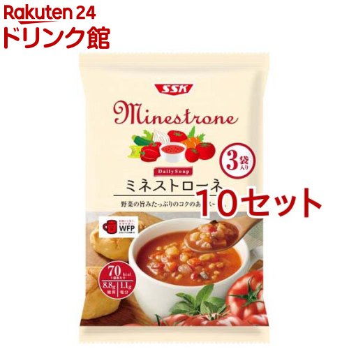 お店TOP>フード>加工食品・惣菜>レトルト食品>スープ(レトルト)>Daily Soup ミネストローネ (160g*3袋入*10セット)【Daily Soup ミネストローネの商品詳細】●野菜の旨みたっぷりのコクのあるおいしさ。 完熟トマトをベースに8種の具材を加えました。 ●Daily Soup(デイリースープ)は本格志向を実現した、ローリングストックにも便利な3食入りのレトルトスープです。 ●温めるだけで具材入りのスープがお楽しみいただけます。 ●素材の味を大切にした家庭的な優しい味わいに仕上げました。 ●パッケージの印刷にはバイオマスインキを採用しています。 【召し上がり方】袋(レトルトパウチ)の封を切らずに熱湯に入れ、3〜5分間沸騰させてからお召し上がり下さい。 【品名・名称】スープ【Daily Soup ミネストローネの原材料】野菜(じゃがいも(遺伝子組換えでない)、たまねぎ、にんじん、ズッキーニ、赤ピーマン、セロリ)、トマトペースト(スペイン製造)、鶏肉、食用調合油、大麦、砂糖、でん粉、チキンエキス、食塩、香辛料、オニオンパウダー、酵母エキス/増粘剤(加工デンプン)、クエン酸【栄養成分】1袋(160g)あたりエネルギー:70kcal、たんぱく質:2.4g、脂質:2.6g、炭水化物:9.9g(糖質:8.8g、食物繊維:1.1g)、食塩相当量:1.1g、カリウム:208mg、リン:37mg【アレルギー物質】鶏肉【保存方法】直射日光を避け、常温で保存してください。 【発売元、製造元、輸入元又は販売元】清水食品※説明文は単品の内容です。 リニューアルに伴い、パッケージ・内容等予告なく変更する場合がございます。 予めご了承ください。 ・単品JAN:4901688707228清水食品静岡県静岡市清水区築地町11-260120-04-8189広告文責:楽天グループ株式会社電話:050-5577-5043[スープ] Daily Soup ミネストローネ(160g*3袋入*10セット)[スープ レトルト 時短 防災 非常食 備蓄] 5,898 ~