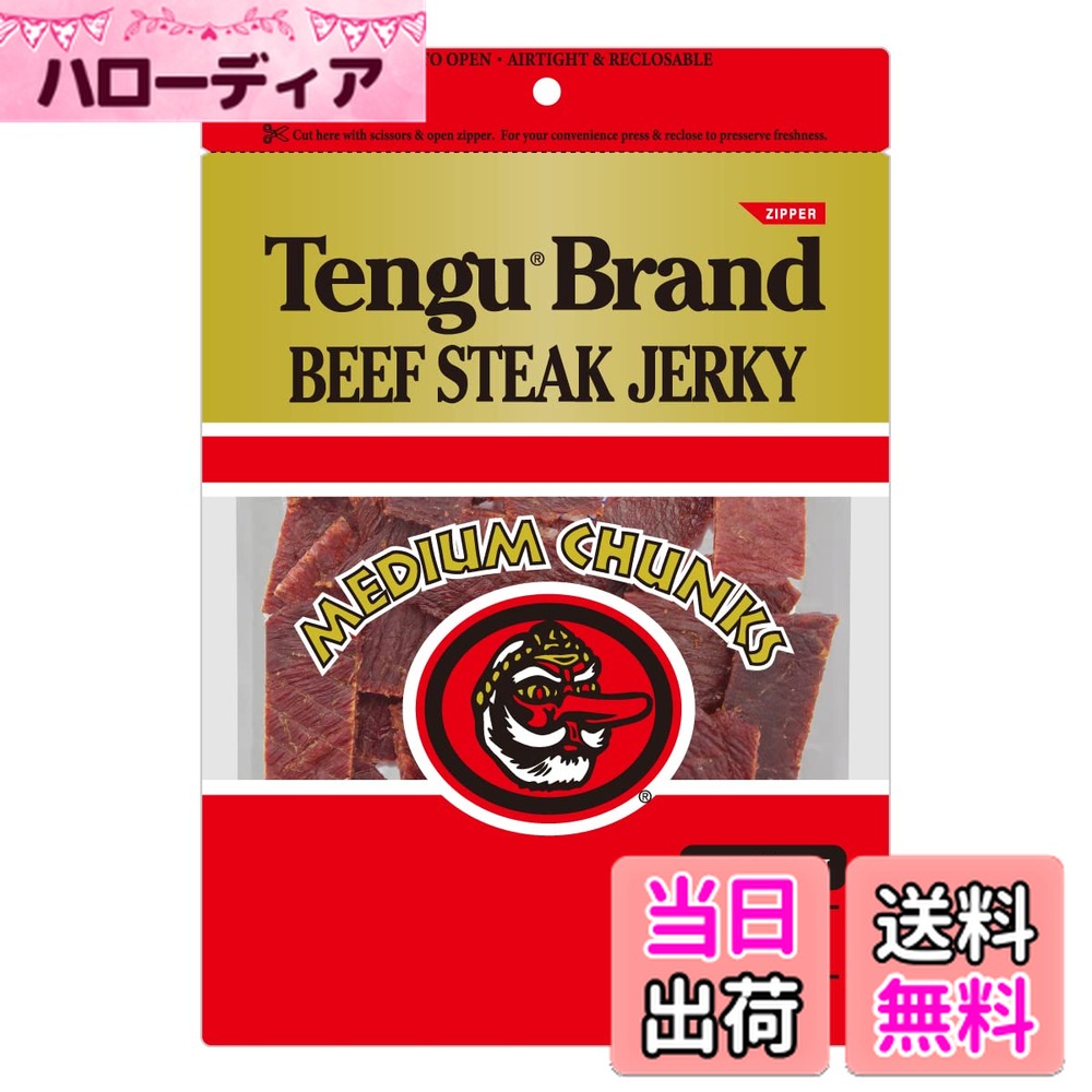 商品情報商品の説明商品紹介 厳選された牛もも肉を使用し、醤油をベースとした味付けのビーフステーキジャーキーです。 しっかりとした歯応えが特長で、噛めば噛むほど味わいを感じられる商品です。 ビール等のおつまみに最適な商品です。 中身はテング ビーフステーキジャーキー レギュラー100gと同じものとなります。 超お徳用大袋サイズ! ! 原材料・成分 牛肉、醤油、砂糖、食塩、胡椒、オニオン末、ガーリック末、しょうが/酸化防止剤(エリソルビン酸Na)、調味料(アミノ酸)、発色剤(亜硝酸Na)主な仕様 ブランド:テング【Tengu】厳選された牛もも肉を使用し、醤油をベースとした味付けのビーフステーキジャーキーです。 超お徳用大袋サイズ!!内容量:150gbr厳選された良質なステーキ用の牛肉を使用したこだわりのジャーキー海外(ハワイ、グアム等)のお土産ビーフジャーキーといえば「テング」 【送料無料】ビーフステーキジャーキー ミディアムチャンク サイズ:150グラム (x 1) 4,073 ~