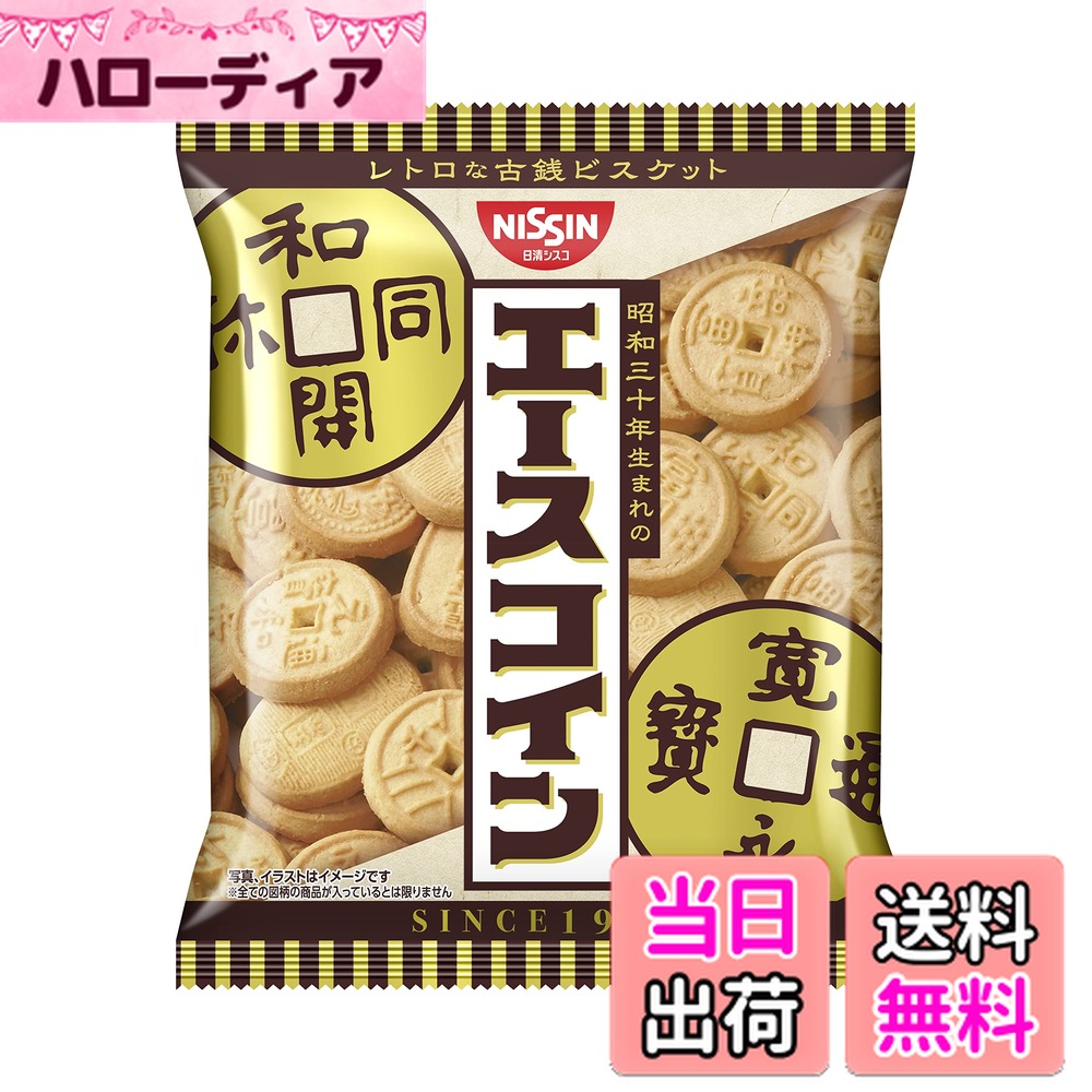 商品情報商品の説明商品紹介 「エースコイン」シリーズは昭和30年発売のロングセラー商品で、懐かしく素朴で温もりある「レトロな」おいしさが特徴のビスケットです。 元和通報や和同開珎、永楽通宝など20種類の古銭がビスケットに描かれており、歴史の勉強にもぴったりです。 そのまま食べるだけでなく、製菓材料にも是非ご利用ください。 原材料・成分 小麦粉(国内製造),砂糖,ショートニング,加糖れん乳,食塩/膨張剤,香料,乳化剤(大豆由来)主な仕様 原材料 : 小麦粉(国内製造),砂糖,ショートニング,加糖れん乳,食塩/膨張剤,香料,乳化剤(大豆由来)商品サイズ:(高さx奥行x幅):18m×3cm×15cmbrメーカー名: 日清シスコ商品の重量: 083kilogramsbr原材料: 小麦粉(国内製造),砂糖,ショートニング,加糖れん乳,食塩/膨張剤,香料,乳化剤(大豆由来) 【送料無料】日清シスコ エースコイン サイズ:80グラム×1袋 1,322 ~