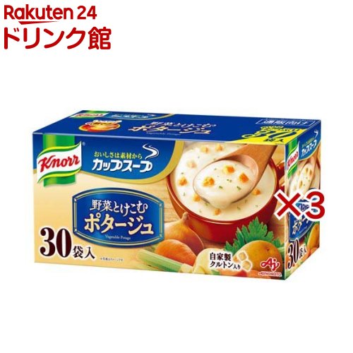 お店TOP>フード>加工食品・惣菜>スープ・シチュー>スープ(粉末)>クノール カップ ポタージュ (30袋入×3セット)【クノール カップ ポタージュの商品詳細】●じゃがいも、たまねぎ、にんじん、セロリなどのいろいろな野菜のおいしさがとけ込んだ、コク深い味わいを楽しめるクリーミーなポタージュです。 【品名・名称】乾燥スープ(ポタージュ)【クノール カップ ポタージュの原材料】でん粉(国内製造)、デキストリン、クリーミングパウダー、砂糖、食塩、乳糖、食用加工油脂、全粉乳、チーズ、オニオン、乳たん白、じゃがいも、酵母エキス、チキンブイヨンパウダー、バターソテーオニオンパウダー、ミルポアパウダー(たまねぎ、にんじん、セロリ、植物油脂、でん粉、ねぎ、バター)、マッシュルームエキス、ローストオニオンパウダー、香辛料、キャベツエキス、うきみ(クルトン、パセリ)/調味料(アミノ酸等)、膨脹剤、(一部に小麦・乳成分・大豆・鶏肉を含む)【栄養成分】1袋(16.5g)あたりエネルギー:69kcal、タンパク質:0.99g、脂質:2.4g、炭水化物:11g、食塩相当量:1.2g【アレルギー物質】小麦・乳成分・大豆・鶏肉【保存方法】常温にて保存【発売元、製造元、輸入元又は販売元】味の素※説明文は単品の内容です。 商品に関するお電話でのお問合せは、下記までお願いいたします。 受付時間 平日9:30-17:00(土日・祝日・6月第3金曜日・夏期休暇・年末年始を除く))調味料・加工食品・その他:0120-68-8181クノールスープ製品:0120-40-5656具たっぷり味噌汁:0120-53-0606甘味料・アミノ酸含有食品:0120-16-0505味の素KK栄養ケア(アクアソリタ、アミノエールゼリーなど):0120-814-222リニューアルに伴い、パッケージ・内容等予告なく変更する場合がございます。 予めご了承ください。 ・単品JAN:4901001895670味の素104-8315 東京都中央区京橋1-15-1※お問合せ番号は商品詳細参照広告文責:楽天グループ株式会社電話:050-5577-5043[スープ] クノール カップ ポタージュ(30袋入×3セット) 4,908 ~