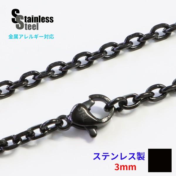 チェーン ネックレス レディース ステンレス ネックレス 4面カットあずきチェーン黒3mm選択可40cmから70cm