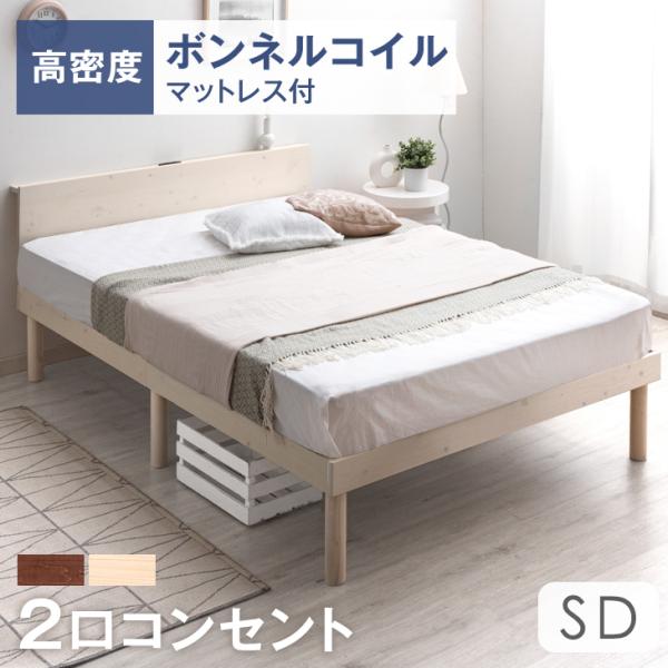 ベッド セミダブルベッド マットレス付き すのこベッド セミダブル ベッドフレーム 宮付き 木製 ボンネルコイルマットレス 宮付きベッド