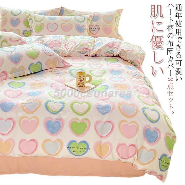 布団カバー 3点セット シングル セミダブル ハート柄 総柄 可愛い 寝具カバーセット ベッドシーツ 布団カバーセット 春夏秋冬 掛け布団カバー 敷布