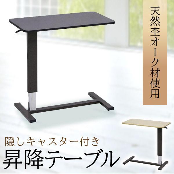 昇降テーブル ベッドテーブル サイドテーブル 介護ベッド用 オーク 突板 天然木 昇降式 介護支援 電動ベッド用 LW-80 キャスター付き ナイトテーブル 幅800