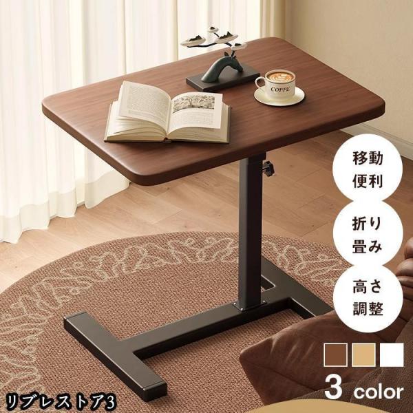 ベッドサイドテーブル 介護 オーバーテーブル 昇降式 無段階高さ調整 キャスター付きテーブル 昇降式サイドテーブル ソファテーブル幅80cm