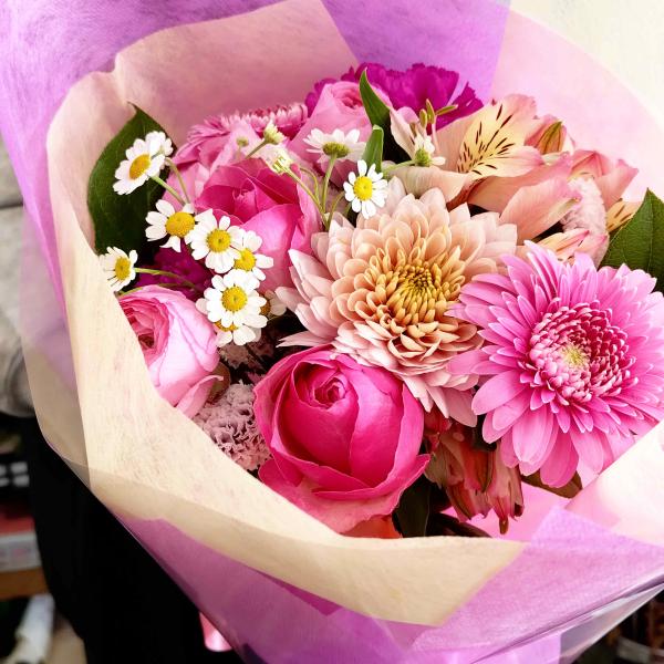 ピンクのブーケ 送料無料 花束 花 季節のお花たっぷり ピンク 誕生日 お祝い 記念日 送別 卒業式