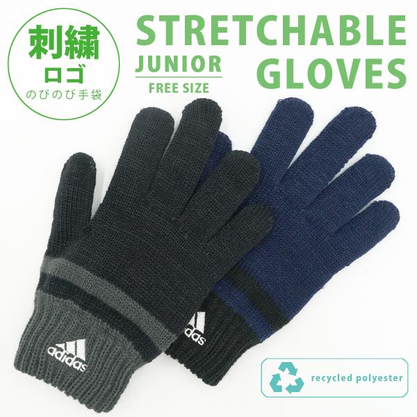adidas アディダス 刺繍ロゴ のびのび手袋 ジュニア スポーツ サッカー クラブ 部活 通学 防寒 暖かい 保護 グローブ