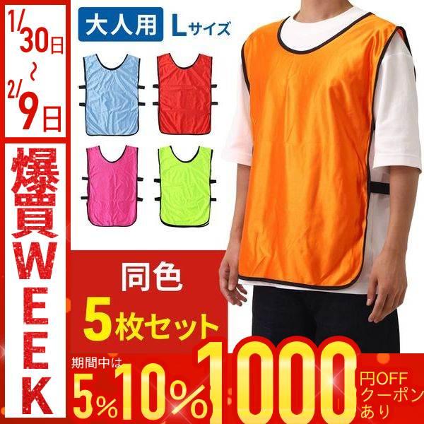 ビブス 5枚セット 無地 大人用 Lサイズ 子ども用 Sサイズ セット ゼッケン まとめ買い 陸上 サッカー フットサル バスケ バレーボール 野球 スタッフ スポーツ